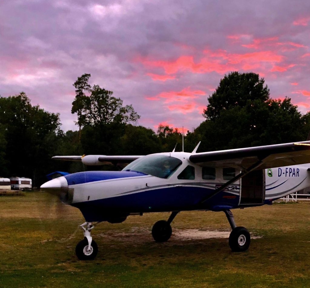 I hangaren bor vårt fina flygplan, en C208 Supervan, som rymmer 15 hoppare och som tar oss till 4000 meters höjd på bara tio minuter! Nytt från förra säsongen är att vi nu även har syrgassystem så vi hoppar titt som tätt från 6000 meter!
