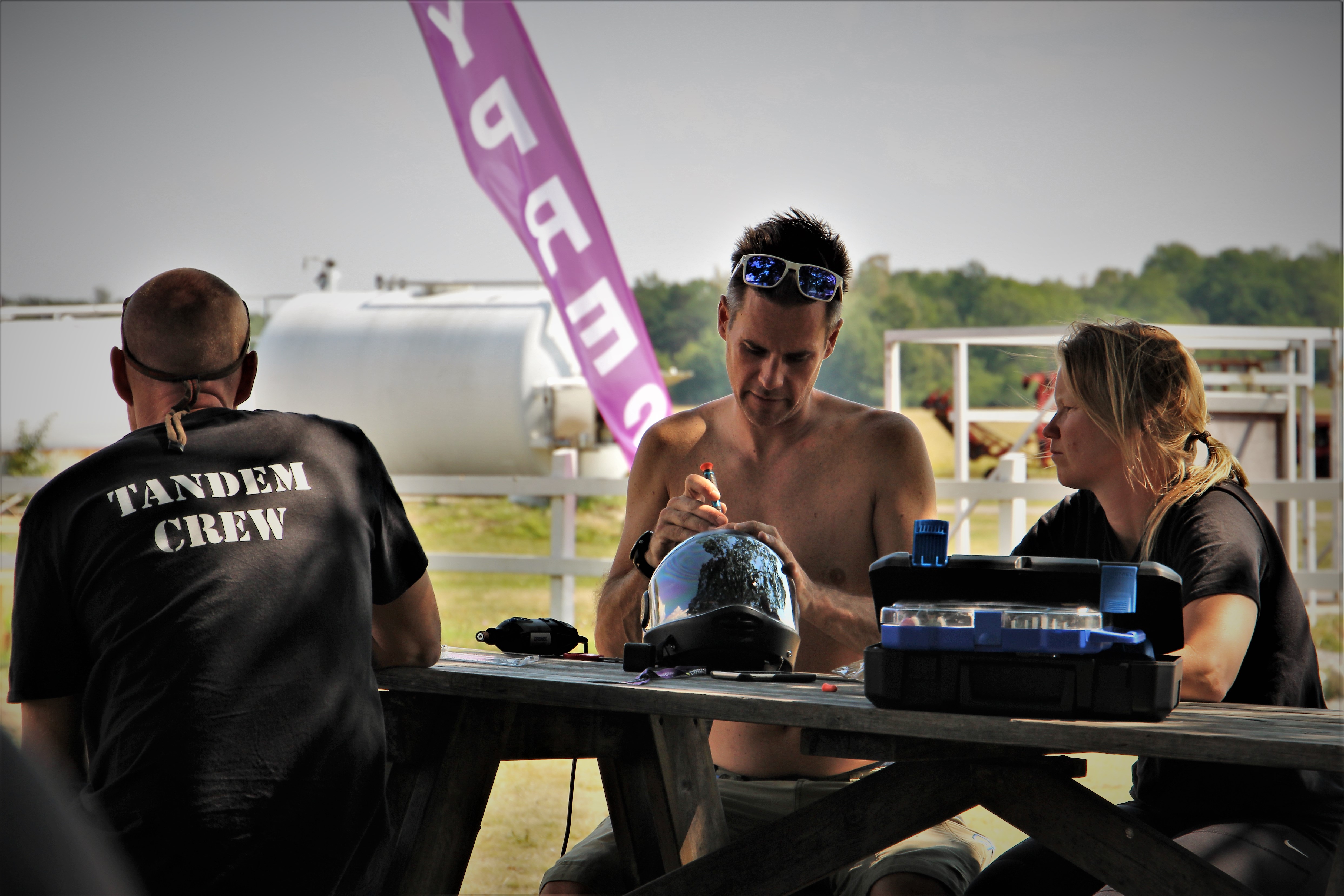 Till fallskärmsklubben Aros är man alltid välkommen. Om inte för att hoppa fallskärm så kanske för att bada i poolen, basta, leka med hundarna, äta middag med gänget, hänga i baren, spela fyra i rad med den obesegrade Tåbbe eller snacka i timmar om precis vad som helst med Söderberg.